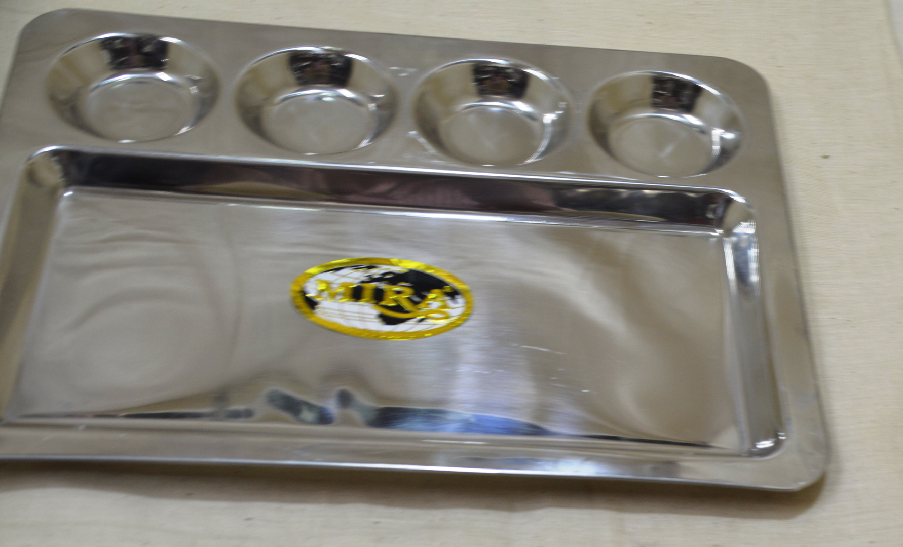 4 Vati Plain Stainless Steel Thali / صحن تقديم من الفولاذ المقاوم للصدأ بأربع أوعي / Kaseli Düz Paslanmaz Çelik Thali / 配有四个碗的不锈钢餐盘 – MIRA Quality