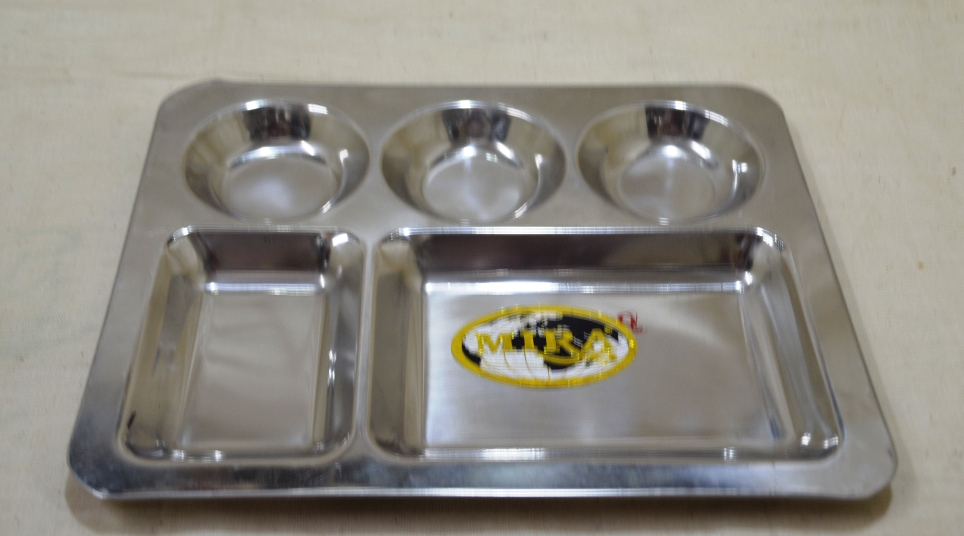 Mira Steels offers a premium 5-compartment stainless steel round vati thali for hygienic and stylish meal serving.