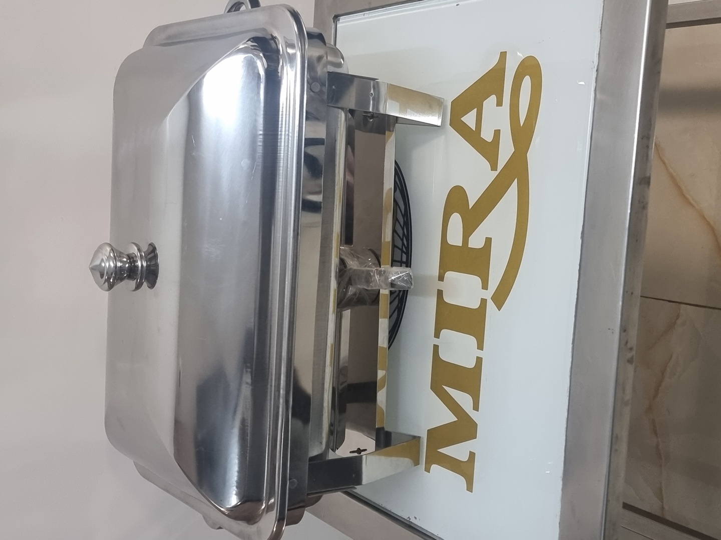 Folding Stand Rectangular Chafing Dish – 9 Litres Stainless Steel Buffet Warmer / شافينغ مستطيل بسعة تسعة لترات مع حامل قابل للطي / Katlanabilir Standlı Dokuz Litre Paslanmaz Çelik Şafing Kabı / 九升折叠支架不锈钢餐炉 – MIRA Quality