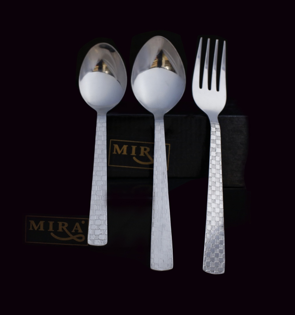 Mira Steels' Chatai series cutlery offers sleek stainless steel designs with a unique textured finish, perfect for everyday use.