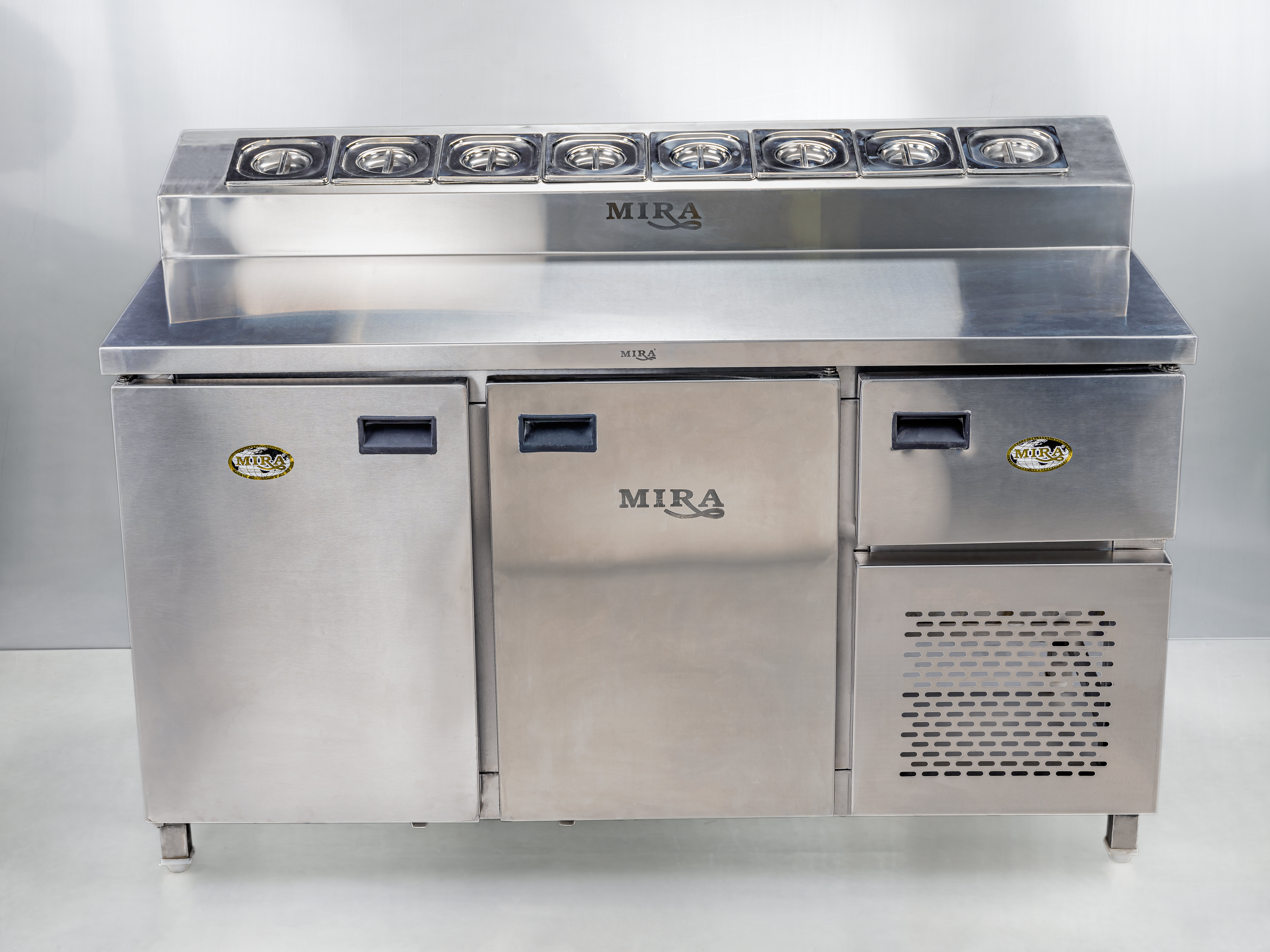 The Commercial Refrigerated Prep Table with Under counter Chiller and Topping Wells is designed to optimise food preparation in high-demand commercial kitchens, restaurants, and catering businesses across Africa and the Middle East. This high-performance table offers a spacious work surface while keeping ingredients chilled and easily accessible in its refrigerated compartments and topping wells. Perfect for pizza stations, sandwich bars, and salad prep, this refrigerated table ensures that your ingredients stay fresh and within reach, boosting productivity and efficiency.