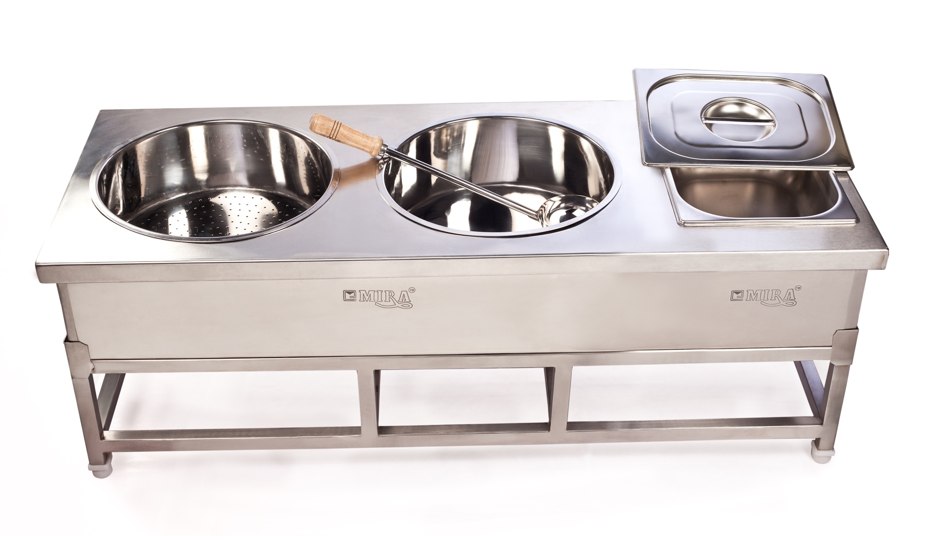 Stainless Steel Dal Rice and Papad Counter – Buffet and Catering Food Service Counter (Africa) – Professional Stainless Steel Rice, Lentil, and Snack Station (Middle East) – منصة ستانلس ستيل لأرز والعدس والباباد – Paslanmaz Çelik Pirinç ve Mercimek Tezgahı – MIRA Quality