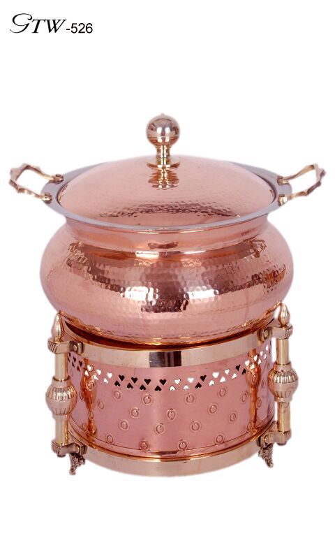 This hammered copper chaffer is widely used in hotels, restaurants, weddings, and banquets across Africa and the Middle East. It is ideal for serving biryani, curries, rice, soups, and festive meals, making it a center piece for luxury dining setups. Strong side handles and a secure lid ensure easy handling and safe serving.