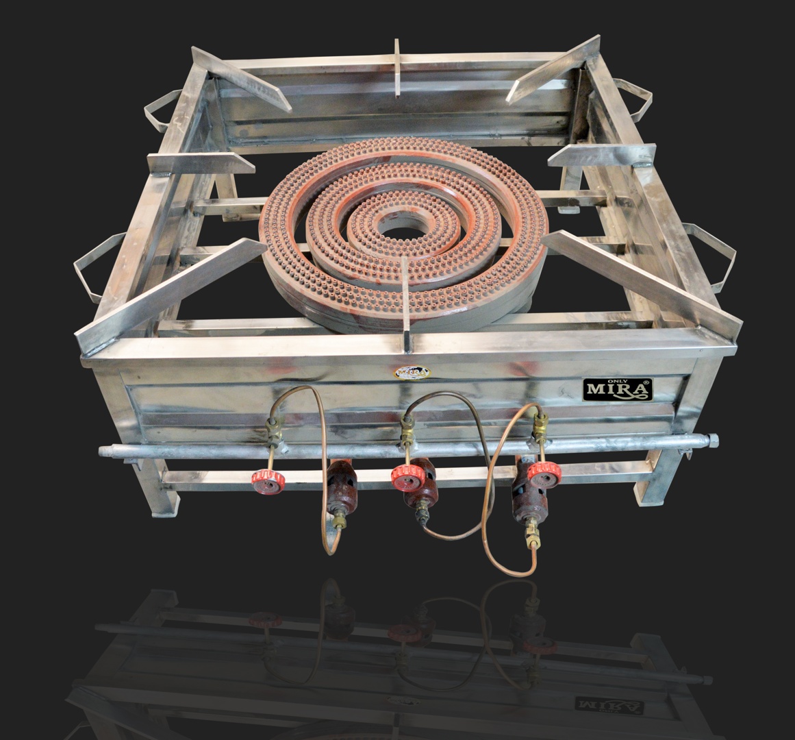 Mira Steels' Jumbo Chulha 36 is a durable, stainless steel cooking stove designed for heavy-duty use, perfect for commercial kitchens and outdoor cooking.