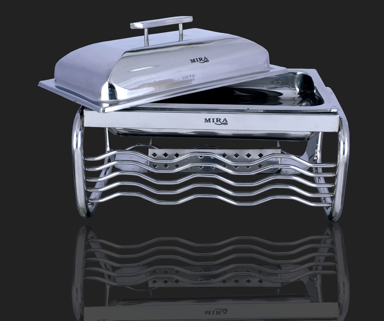 Built with premium stainless steel, it offers exceptional strength, shine, and corrosion resistance. The innovative lift-top mechanism enables effortless operation, improving hygiene and efficiency in high-traffic buffet environments. Its layered stand not only adds visual appeal but also supports better heat circulation, keeping dishes warm for longer durations. Mira Steels is renowned for manufacturing durable buffet equipment that blends practicality with professional aesthetics, making this chaffer a preferred choice across Africa, the Middle East, and global hospitality industries.