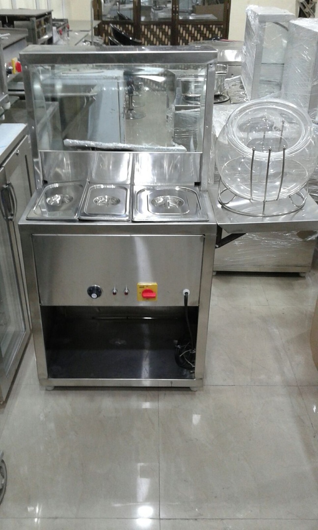 The Panipuri Stainless Steel Counter with Glass Display is designed for hygienic, stylish, and professional serving of Panipuri, Golgappa, or Chaat at catering events, restaurants, hotels, and food stalls. Built with high-quality stainless steel, this counter features built-in food pans with lids, a protective glass display, and a separate water/matka section for flavored water service. The design enhances food presentation, maintains hygiene, and ensures efficient service during large gatherings, weddings, or commercial food businesses. Suitable for both indoor and outdoor use, it is a durable and attractive solution for live snack counters across global markets.