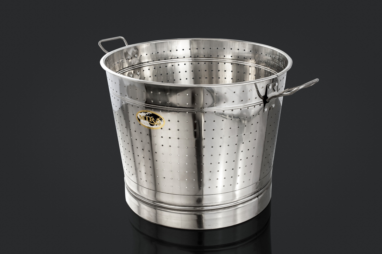 A sturdy stainless steel boya for storing rice, ensuring freshness and preventing pests.