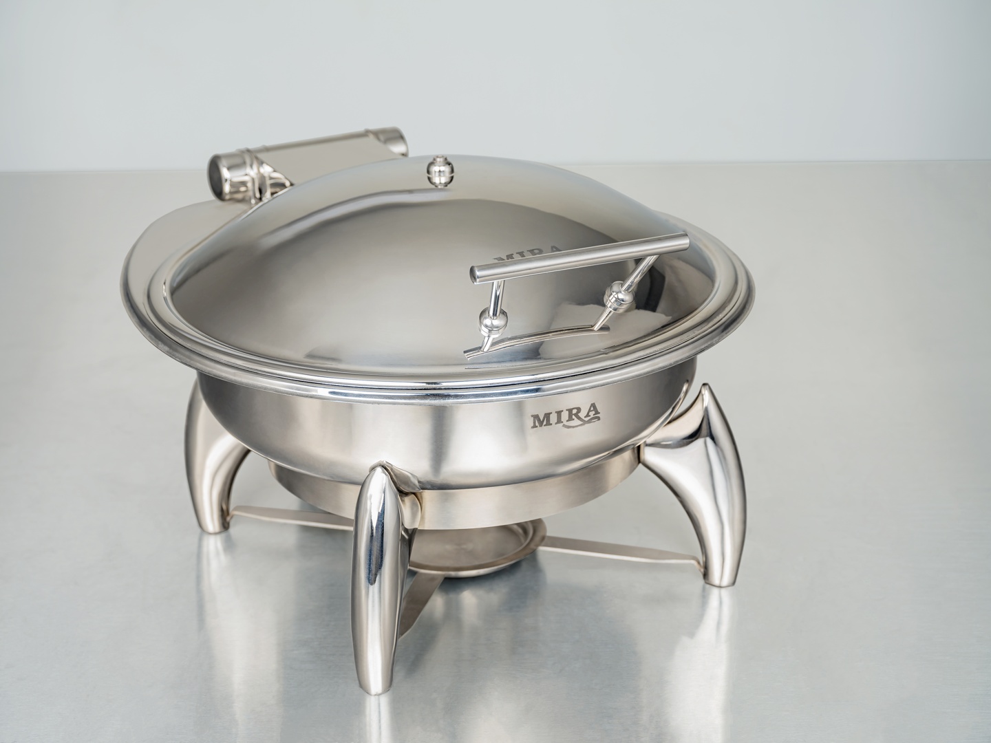 The Round Hydraulic Chafing Dish by Mira Steels is designed to deliver a seamless buffet serving experience for hotels, banquets, restaurants, and catering services worldwide. Built with premium stainless steel and a smooth hydraulic roll-top mechanism, this chafing dish combines elegance with practical functionality. Its round design provides easy accessibility for guests, while ensuring food remains warm, fresh, and visually appealing throughout service. Trusted across Africa, the Middle East, and international markets, this model reflects the superior craftsmanship of Mira Steels.