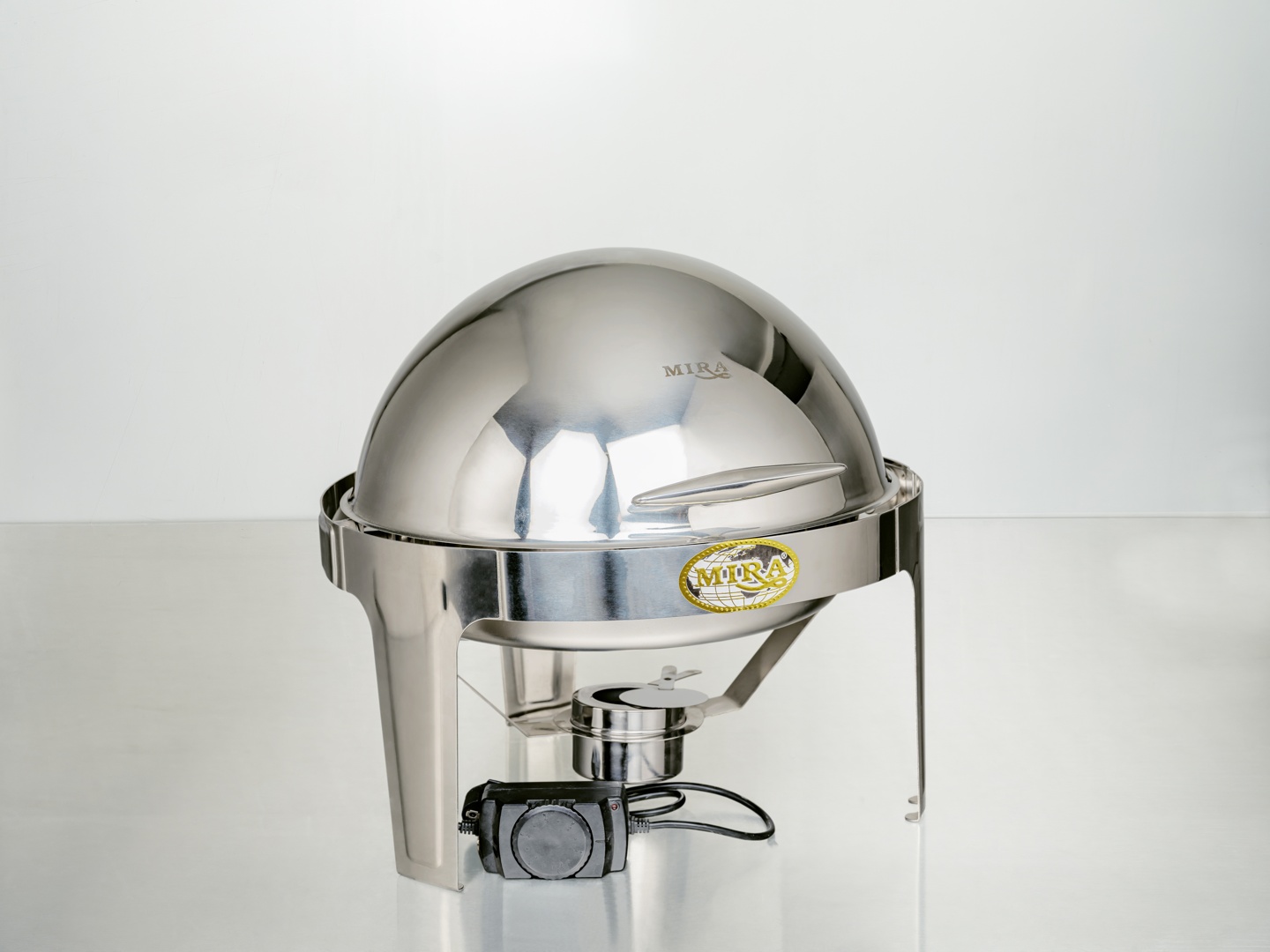 Mira Steels Round Roller Chaffer is a durable stainless steel serving dish designed to keep food warm and fresh for hours.