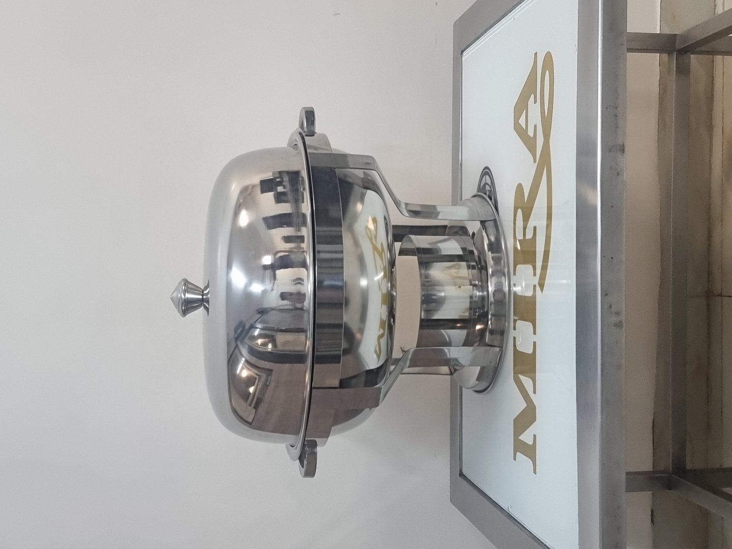 Mira Steels' Round Light Chaffer is a sleek, stainless steel food warmer, perfect for keeping dishes hot and fresh during buffet-style service.
