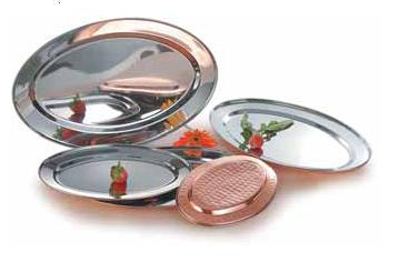 This elegant serving plate features a durable stainless steel base with a striking copper-toned finish. Ideal for showcasing small dishes or creating a visually appealing centerpiece, this plate adds a touch of sophistication to any table setting.