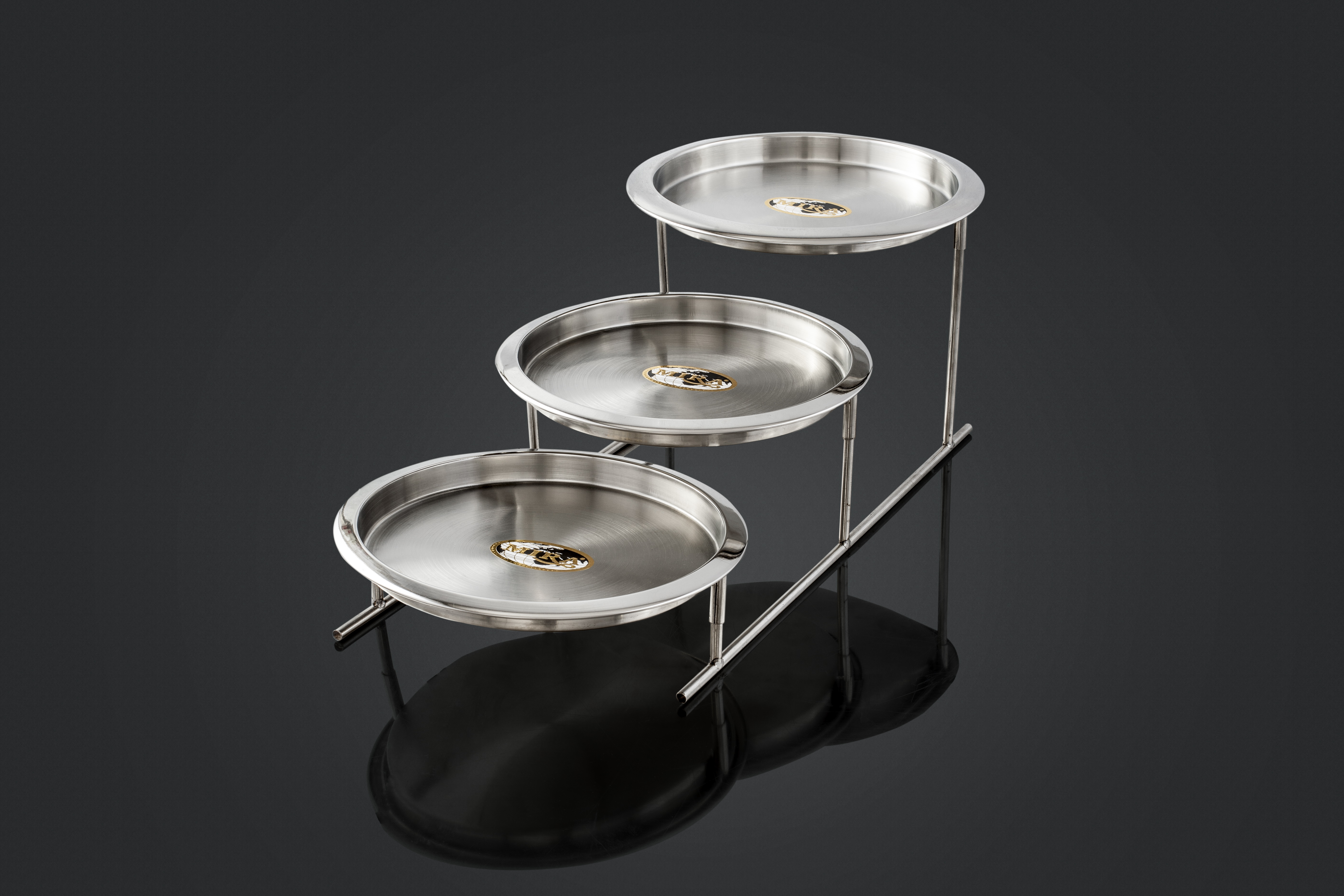 Salwar Stand with 3-Tier Round Trays – Buffet & Catering Display Rack / حامل طعام من الفولاذ المقاوم للصدأ بثلاثة صواني دائرية – رف عرض للبوفيه والتموين / Msingi wa Chuma cha Pua wa Salwar wenye Vito 3 vya Mzunguko – Rack ya Onyesho la Bufet na Upishi