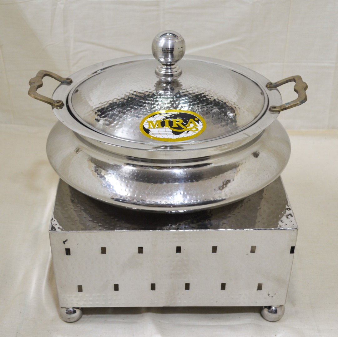 This high-quality stainless steel chaffer features a unique square hammered design, adding both style and functionality. Its versatile design is perfect for grilling, frying, and serving a variety of dishes. The durable stainless steel construction ensures long-lasting use and easy cleaning.