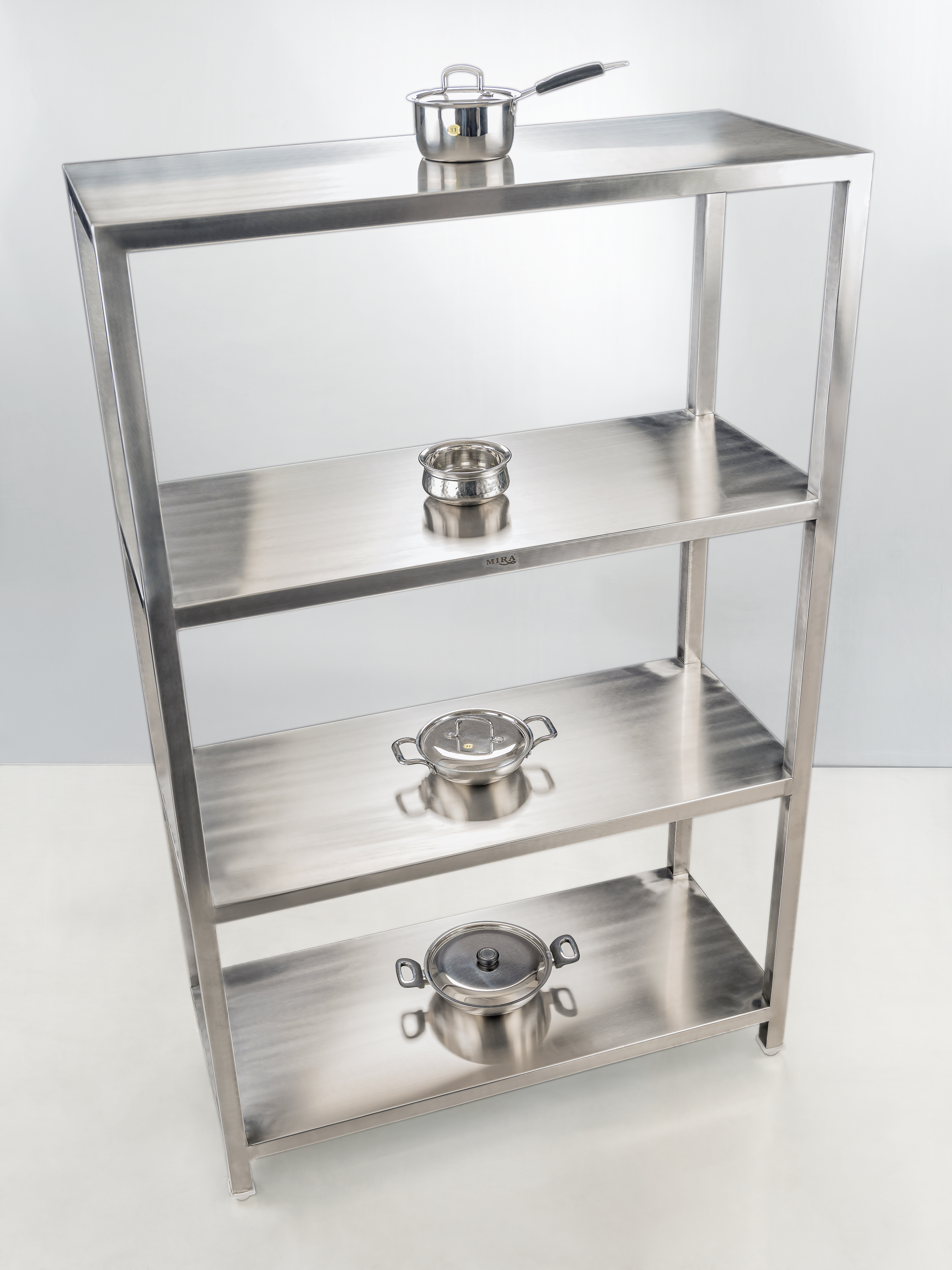 Stainless Steel 4-Tier Storage Rack | رف تخزين 4 طبقات من الستانلس ستيل | Étagère de Rangement 4 Niveaux en Inox | Rafu ya Kuhifadhia Hatua 4 za Chuma cha Pua