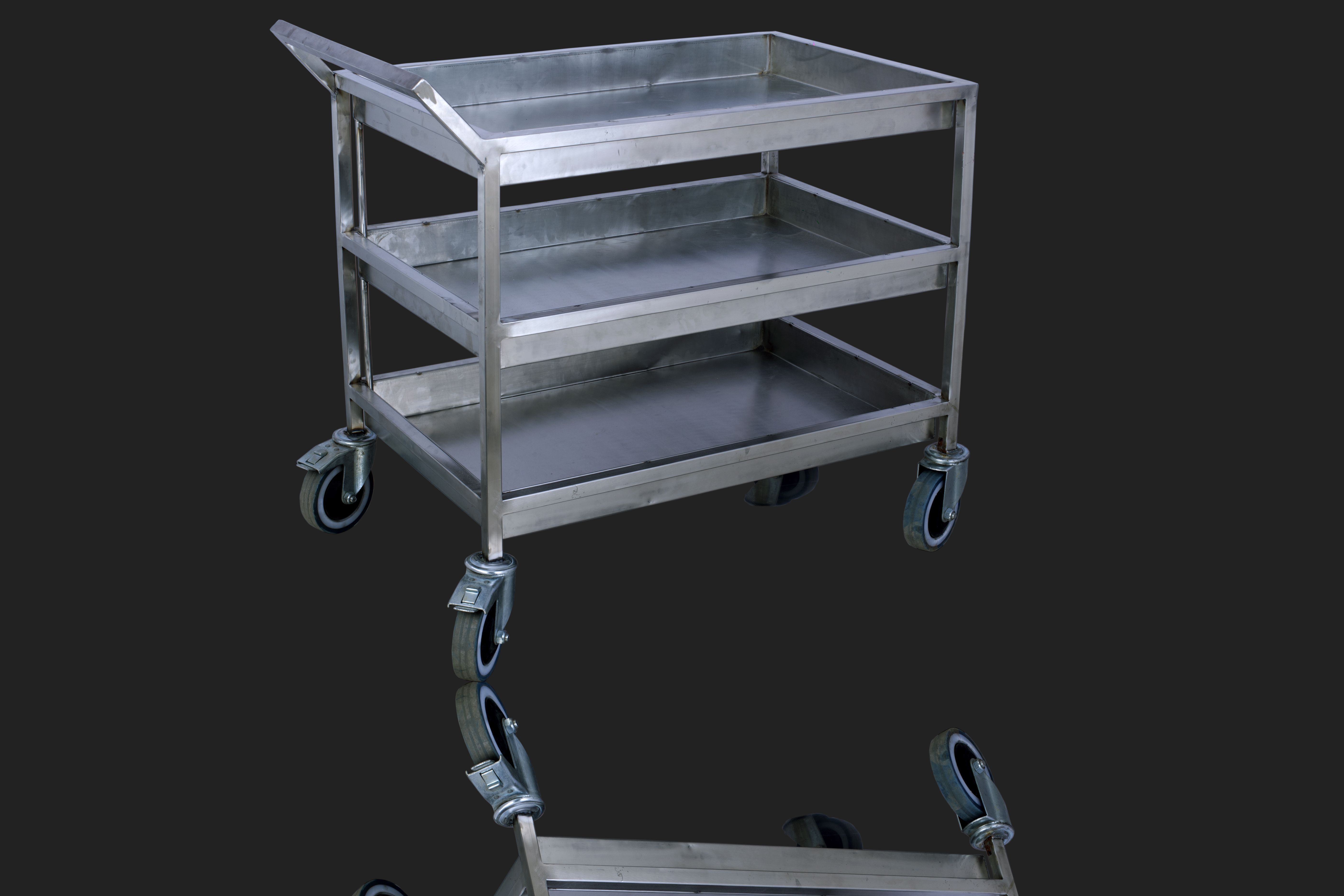 Stainless Steel Three Layer Service Trolley | عربة خدمة ثلاثية الطبقات من الستانلس ستيل | Chariot de Service à Trois Niveaux en Acier Inoxydable | Gari la Huduma ya Tabaka Tatu la Chuma cha Pua