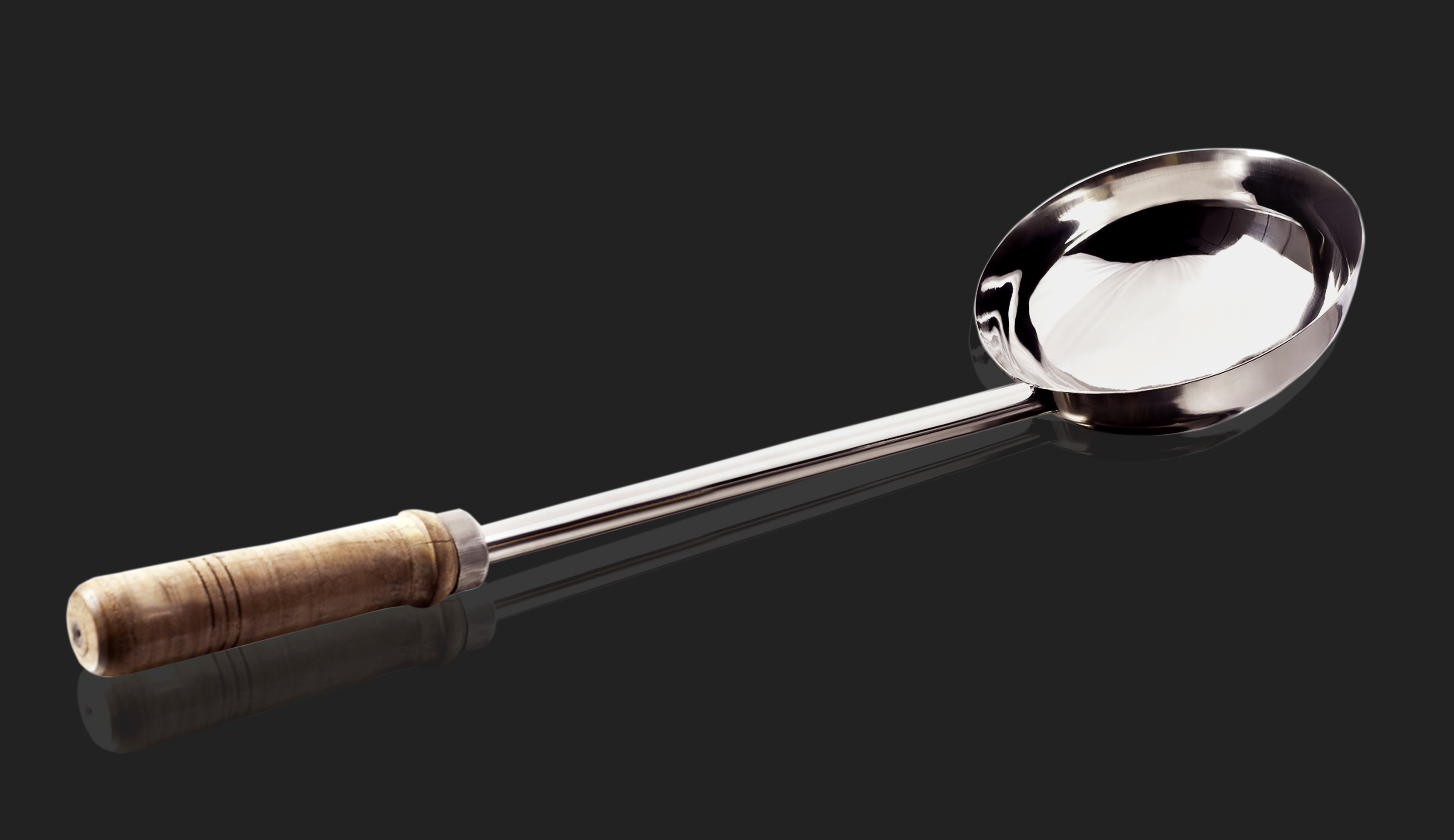 Heavy-duty stainless steel ladle with wooden handle